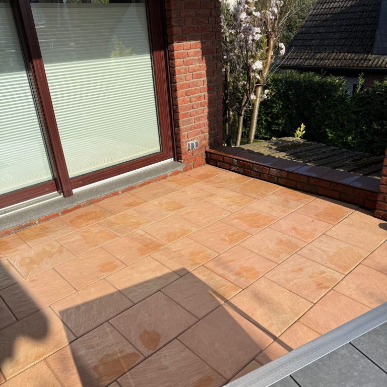Terrassenreinigung: Sanfte, aber wirkungsvolle Säuberung von Holz-, Stein- oder Fliesenflächen